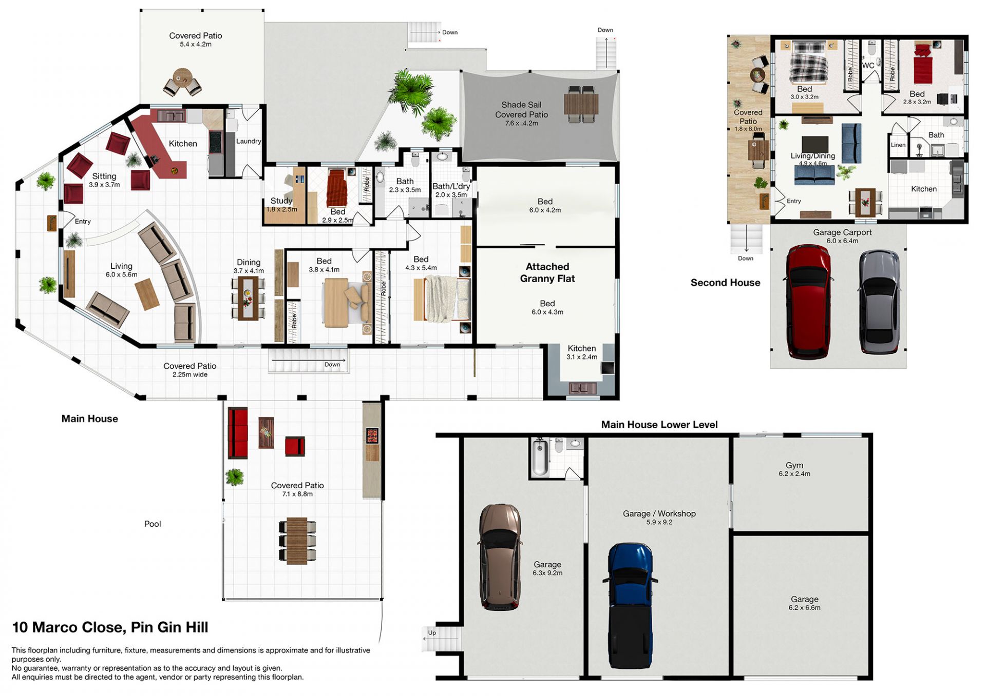 The main house is made from brick and tile with cyclone rods anchoring her into the hill side. It has withstood 2 x category 5 cyclones, with minimal damage and has an inbuilt cyclone shelter. 3 bedrooms, all with built-in robes and an office. Upstairs and downstairs bathrooms. Open plan living to bring the family together and a stunning Tasmanian oak kitchen. Sunken lounge with custom made, curved reclining lounge chairs.