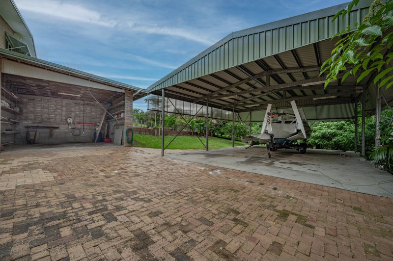 Hidden from the street is the lockable 8 car garage which is also a cyclone shelter, it has its own bathroom and toilet, the space houses a monstrous workshop with 3 phase power and