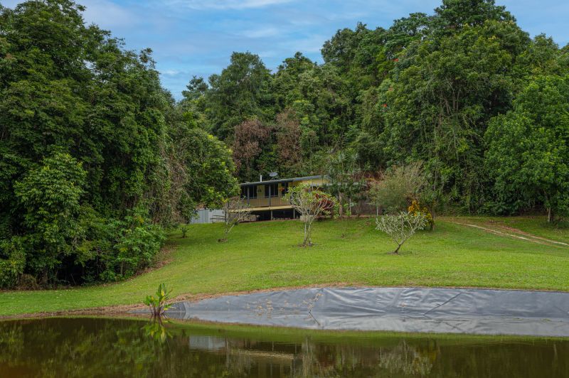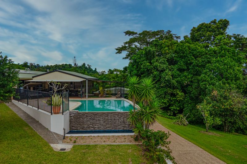 Elevated 600ft above sea level, its usually 4 degrees cooler then in town and captures the breeze and enjoys breath-taking rainforest views to Mt Bartle Frere, (the tallest Mountain in Queensland). Pin Gin Hill is a very small housing suburb with mostly owner occupier, acreage lots. The soil is rich volcanic, with natural springs.