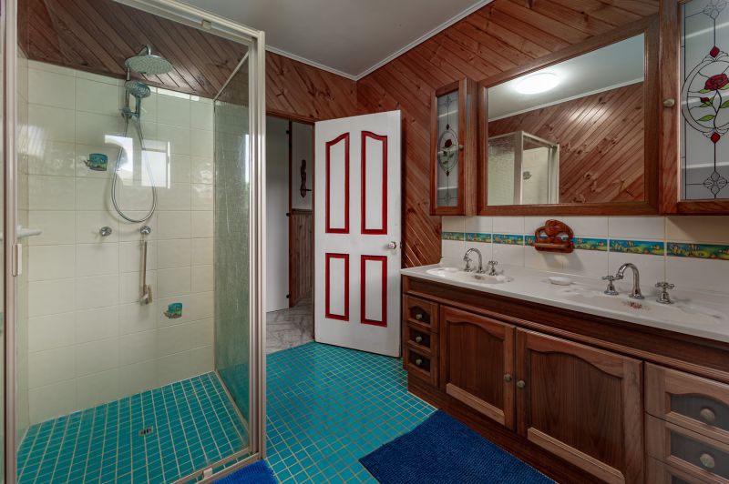 10.5 acres, taking up almost an entire valley, with a mixture of gulf course style greens and approximately 4 acres of old growth rain forest up the hillsides and around the creek. Yah, that’s right, you get to have your own valley with a dam for swimming and or farming. The rich volcanic soil does not have clay, so the dam was made with a heavy-duty liner and stays full year-round. She is 18ft deep straight off the dam wall and has a syphoning system with a 1-way valve installed so it syphons from the bottom of the dam, flowing under rather than flow over, the spill way. Established fruit trees including rare exotic fruits.