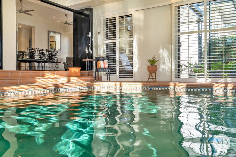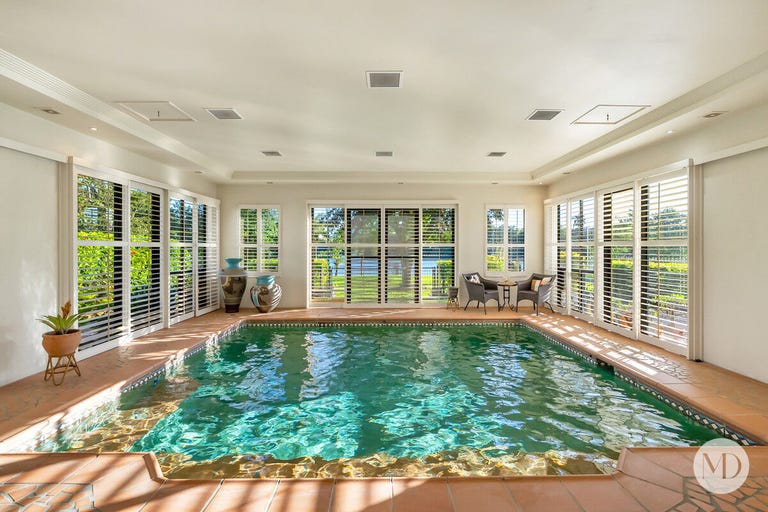 The home flows effortlessly into spacious open plan living, wrapped around a stunning indoor pool and framed by views of the lush garden and river beyond. The gourmet kitchen takes centre stage, overlooking generous dining and living areas - perfect for entertaining. A separate study or home office and multiple al fresco terraces complete the lower level.
