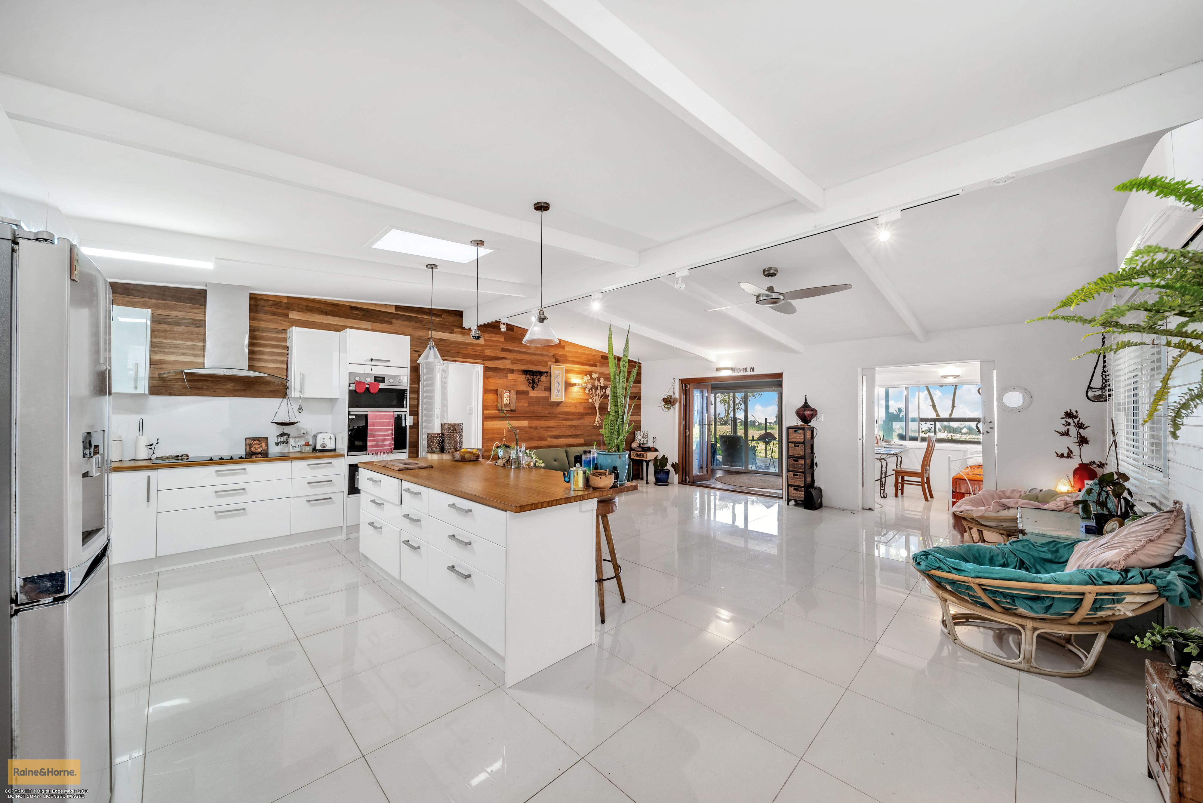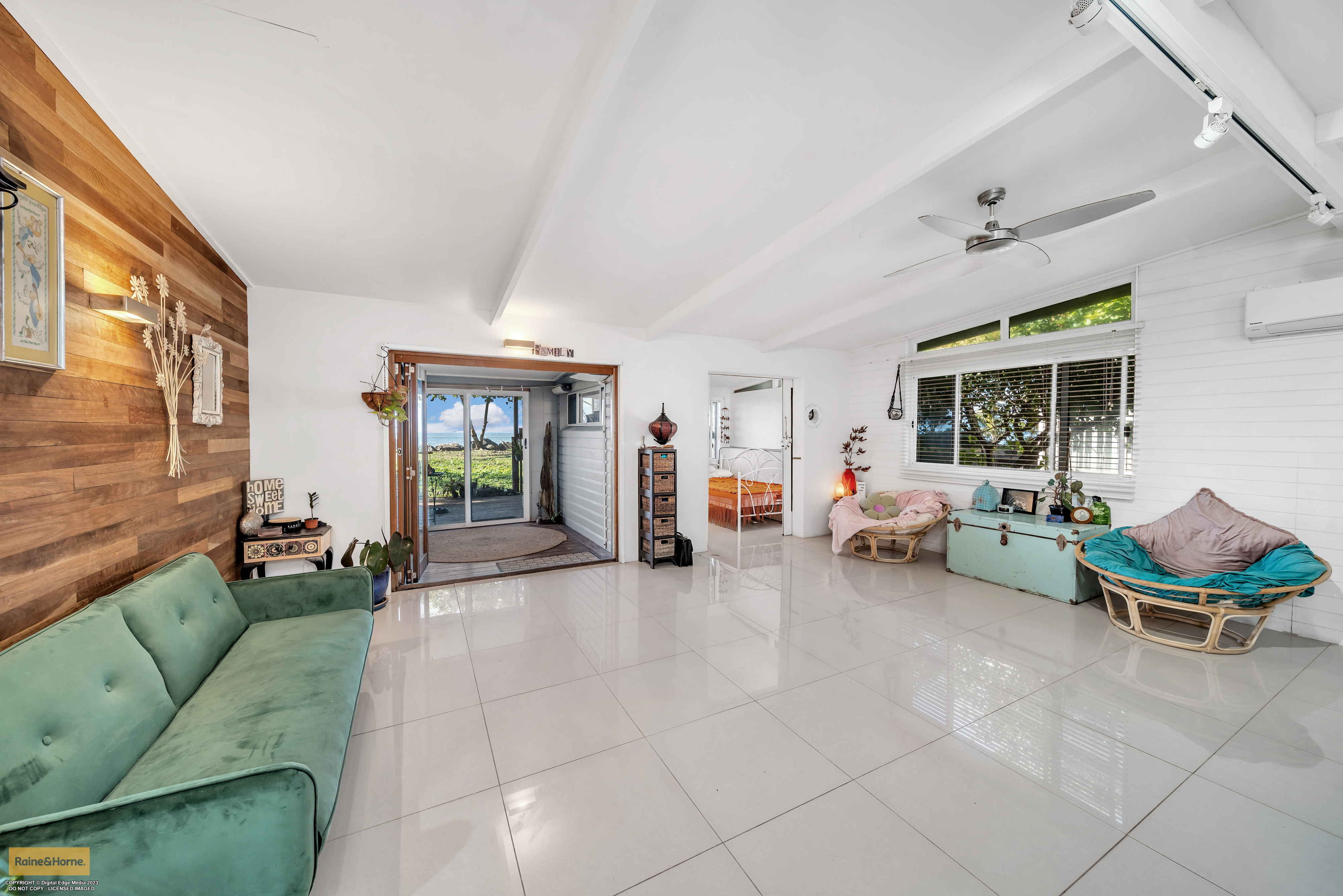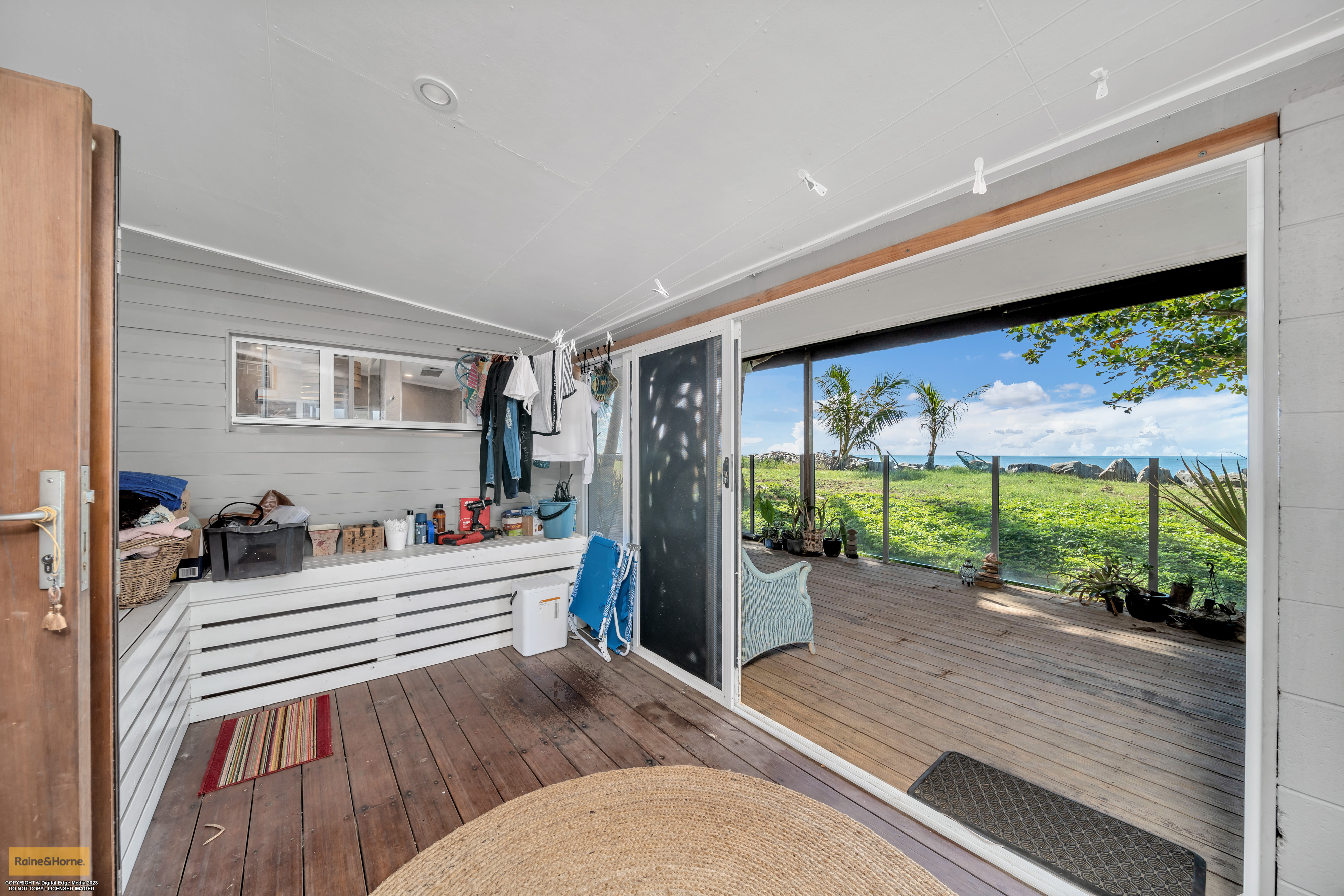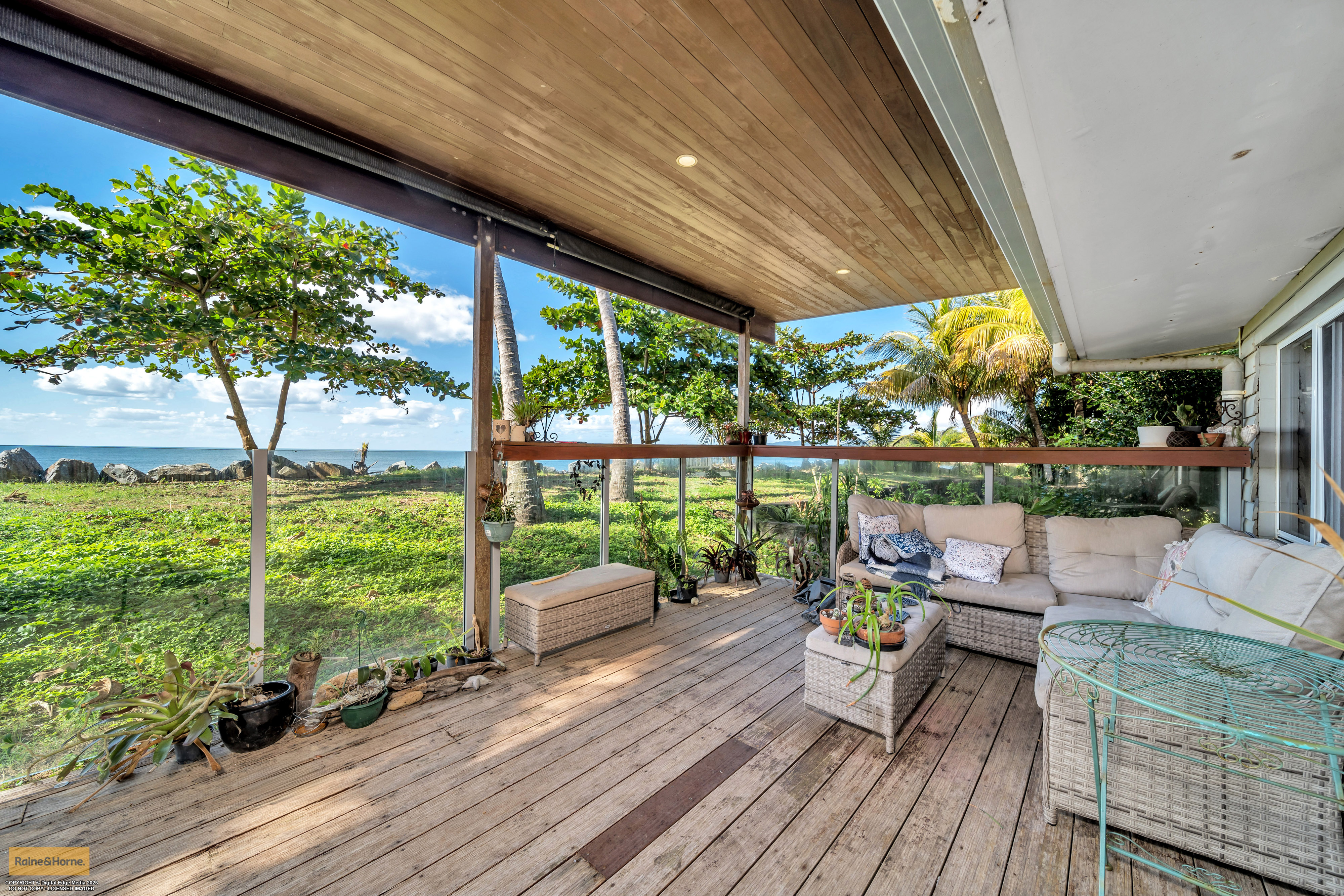 Family Home On The Beach Don't miss this opportunity to live a peaceful life on the shores of Flying Fish Point! The opportunity to own a home on absolute beachfront is not to be missed. This Hamptons style home is a modern 4 bedroom, 2 bathroom lowset home, two living areas, and a large shaded front yard with ample space for 2 vehicles and the boat! As you enter from the front door you are greeted with an enormous living area/rumpus, a quick turn to the right takes you to a bedroom and hidden laundry. You will then enter the modern kitchen area with a beautifully designed island bench. Stand at this bench a moment and look out to the ocean! You will be delighted to see the view of the sea filtered by a palm tree or two. The open plan kitchen, dining and lounge area leads to a bedroom, you will not be criticised if you walk straight out into the sun room and onto the rear deck, that's where the magic happens. However to the left is a bedroom facing the front of the home, a beautifully modern bathroom and for the grand finale, making the most of the sea view, is the master bedroom and ensuite.