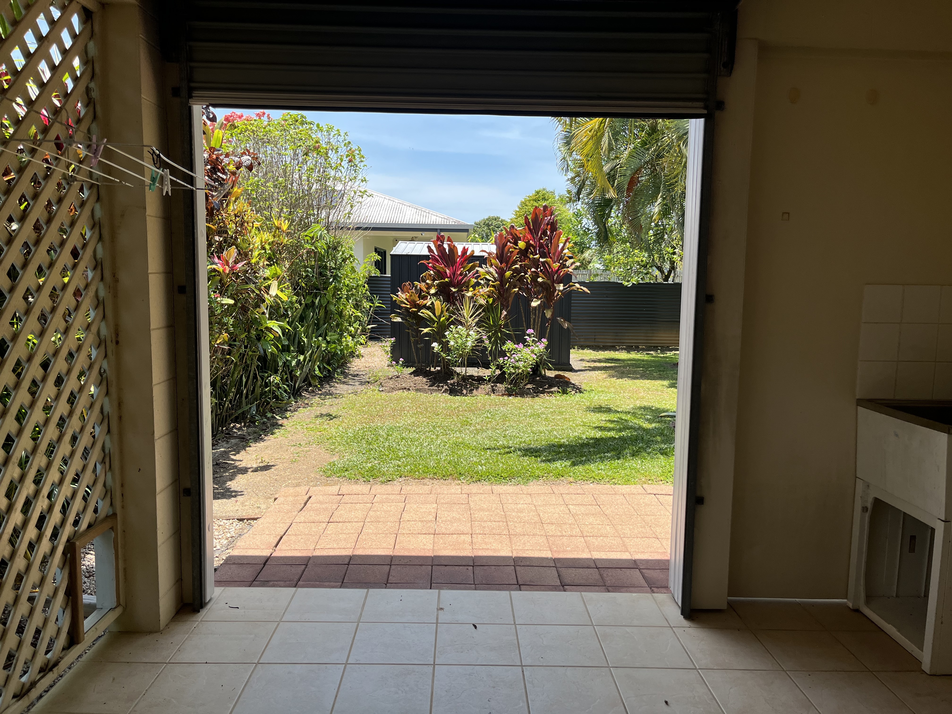Enter the fully fenced yard, over a pebbletek driveway and into your roller door carport, secure and safe.