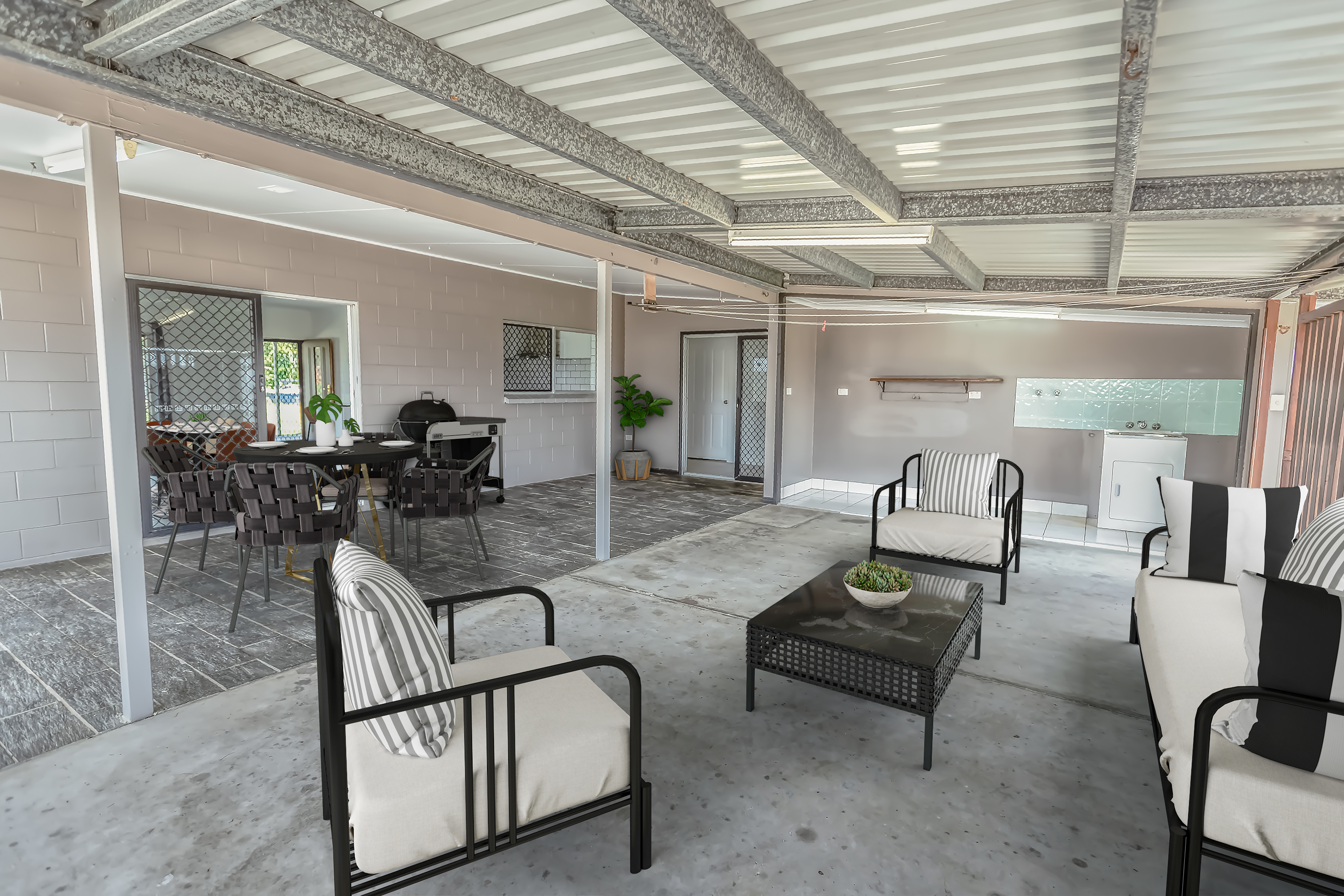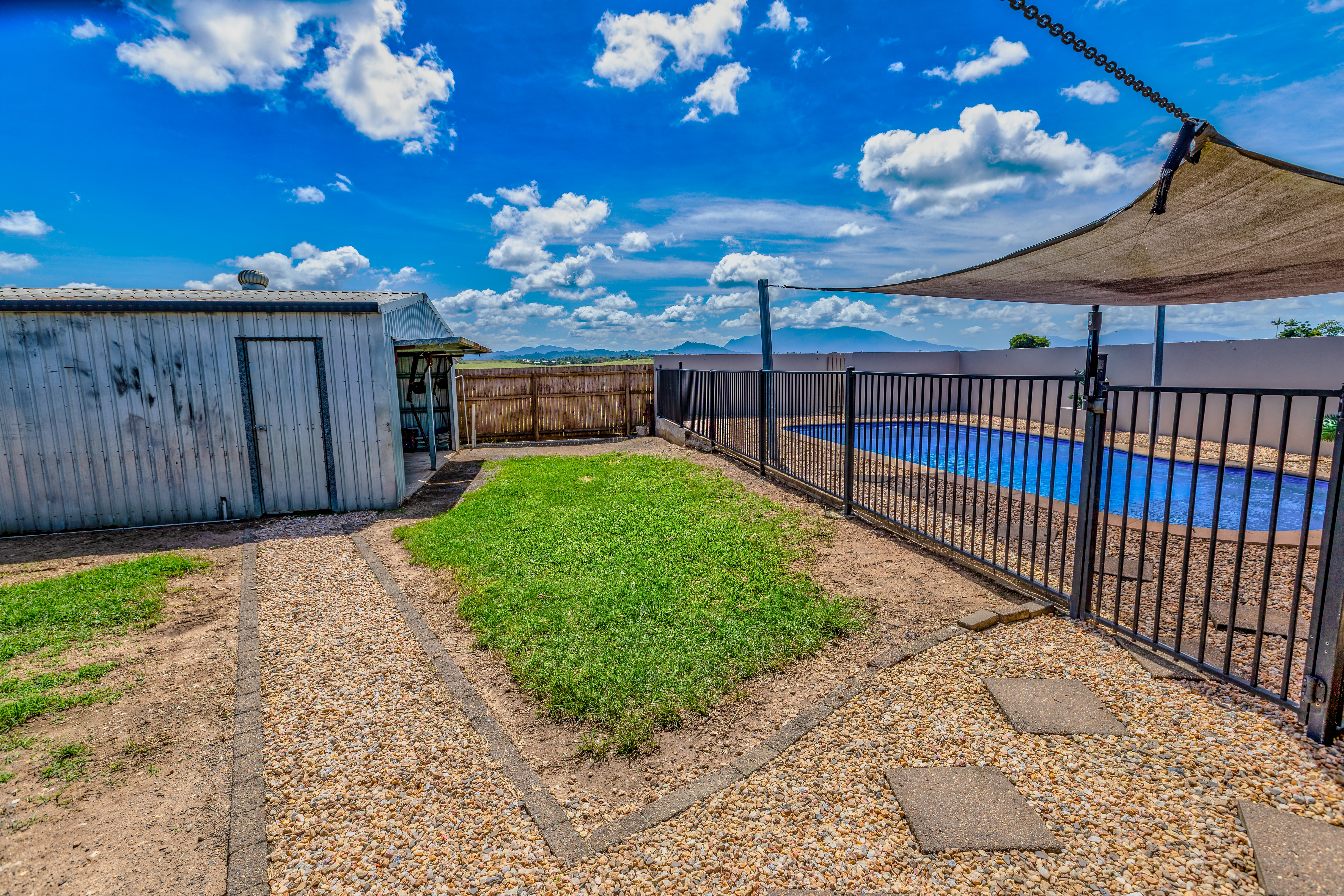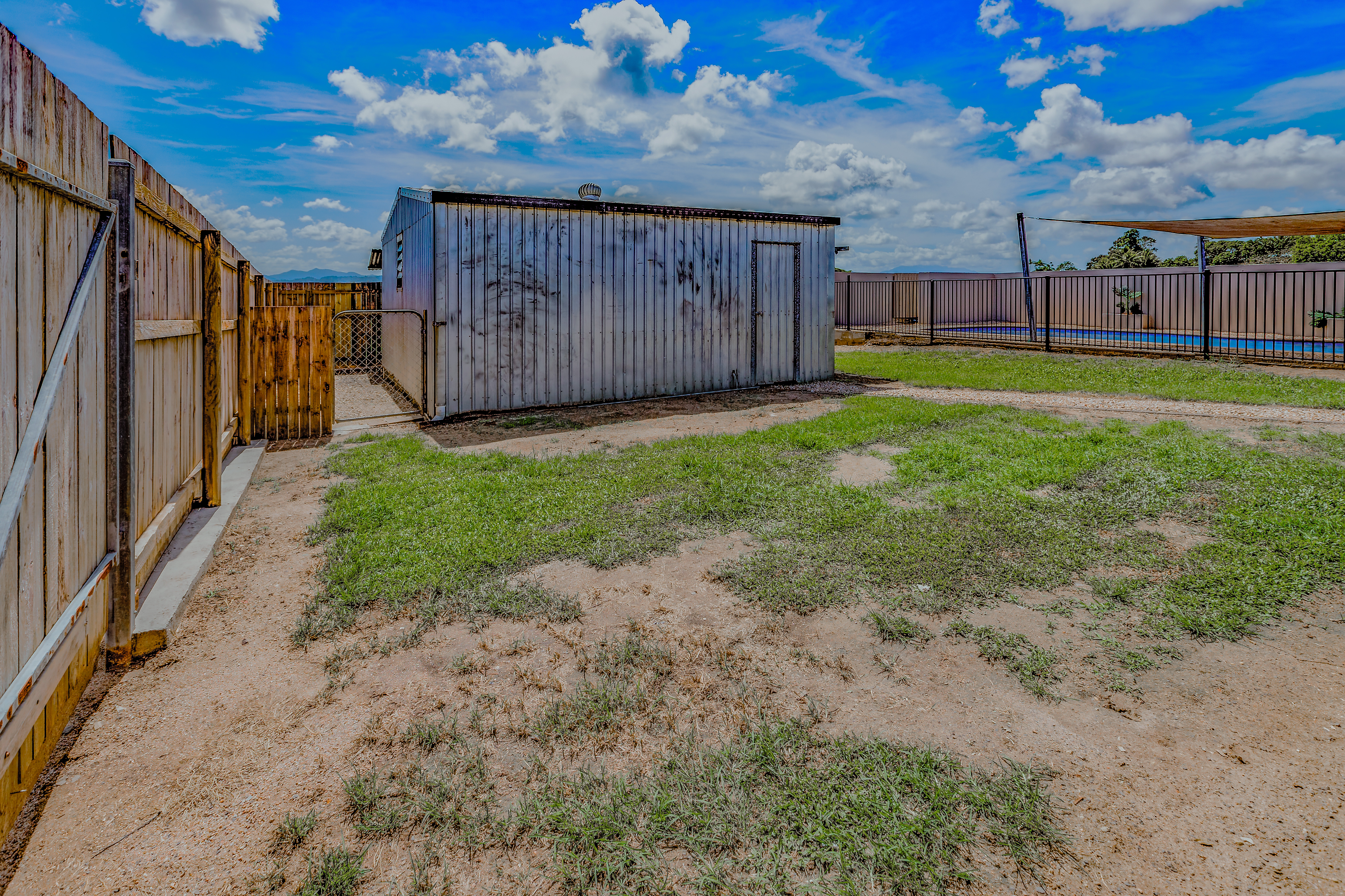 The backyard is an area the whole family will love, with a lawn for the kids or pets and a swimming pool ready for the kids to play and cool off. The two-car carport and two-bay shed provide ample space for parking and storage. The carport space doubles as an outdoor living space with plenty of room for family and friends to gather.